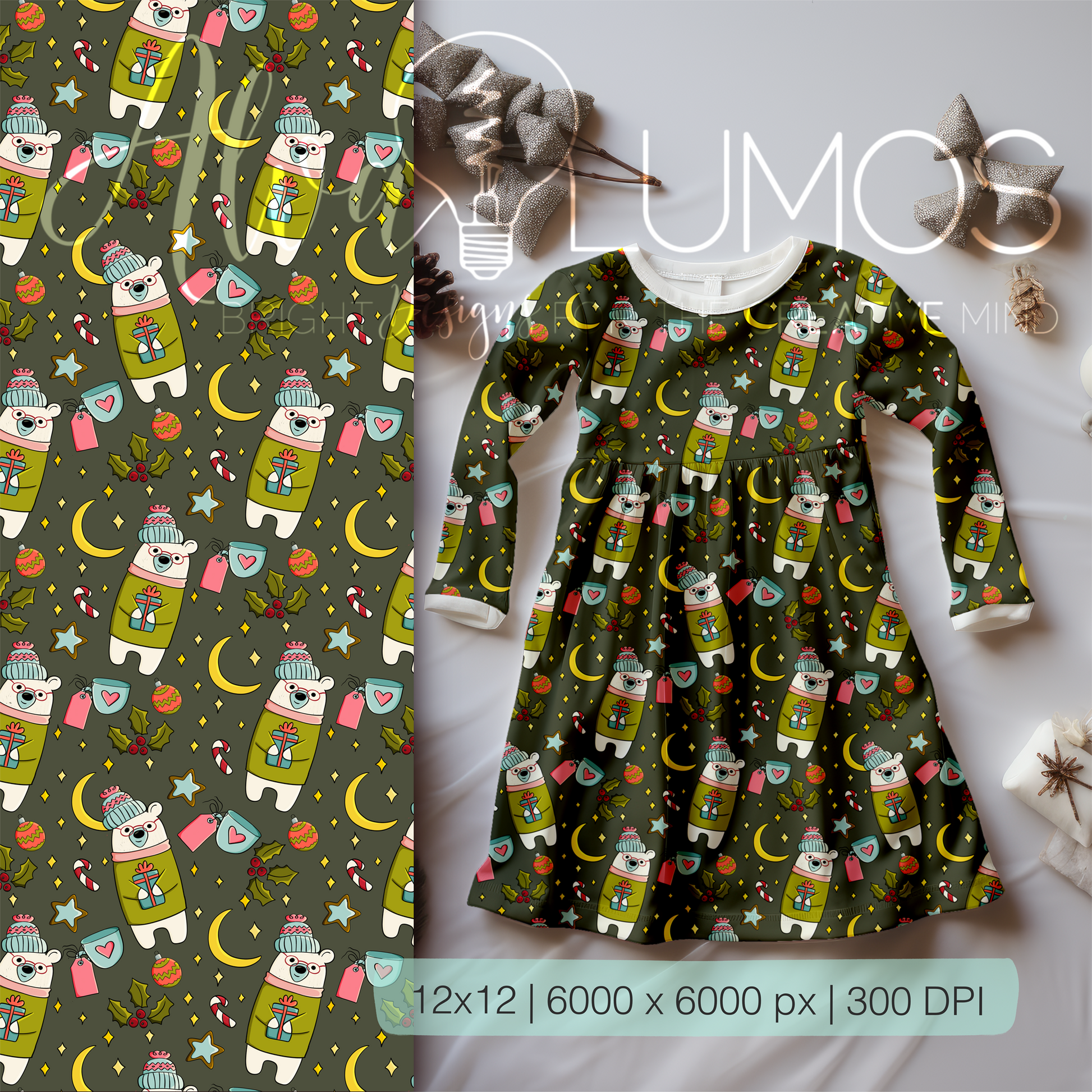 Transform your projects with my exclusive polar bear winter celebration, Christmas collection of seamless patterns, designed to elevate your creations with style and ease. Perfect for small businesses, our digital files come with personal rights, allowing you to use these patterns across a range of applications: